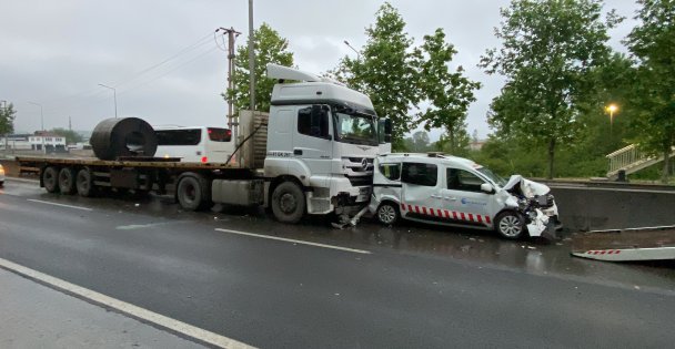 Kaza, sabah saatlerinde Mahmut Paşa Mahallesi D-130 kara yolu geçişi Kocaeli İl Emniyet Müdürlüğü mevkiinde meydana geldi. İzmit istikametine seyir halinde olan A.A. idaresindeki 41 ALN 538 plakalı tır, F.C. kontrolündeki 41 AIK 792 plakalı hafif ticari araç ve H.A. yönetimindeki 41 GK 261 plakalı Mercedes marka tır çarpıştı. Kazanın şiddetiyle hafif ticari araç 2 tır arasında kalırken, sürücü F.C. yaralandı. 112 Acil Çağrı Merkezi'ne ihbarda bulunulmasıyla adrese sağlık, polis ve itfaiye ekipleri sevk edildi. Sağlık ekiplerince ilk müdahalesi yapılan F.C., hastaneye götürüldü.