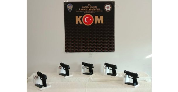 Kocaeli'de durdurulan bir araçta 5 ruhsatsız tabanca ele geçirildi.