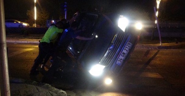 Öte yandan kaza anı, başka bir aracın yol kamerasına yansıdı. Görüntülerde, cipin sinyalizasyon direğine çarparak sürüklendiği ve yan vaziyette durabildiği görüldü.