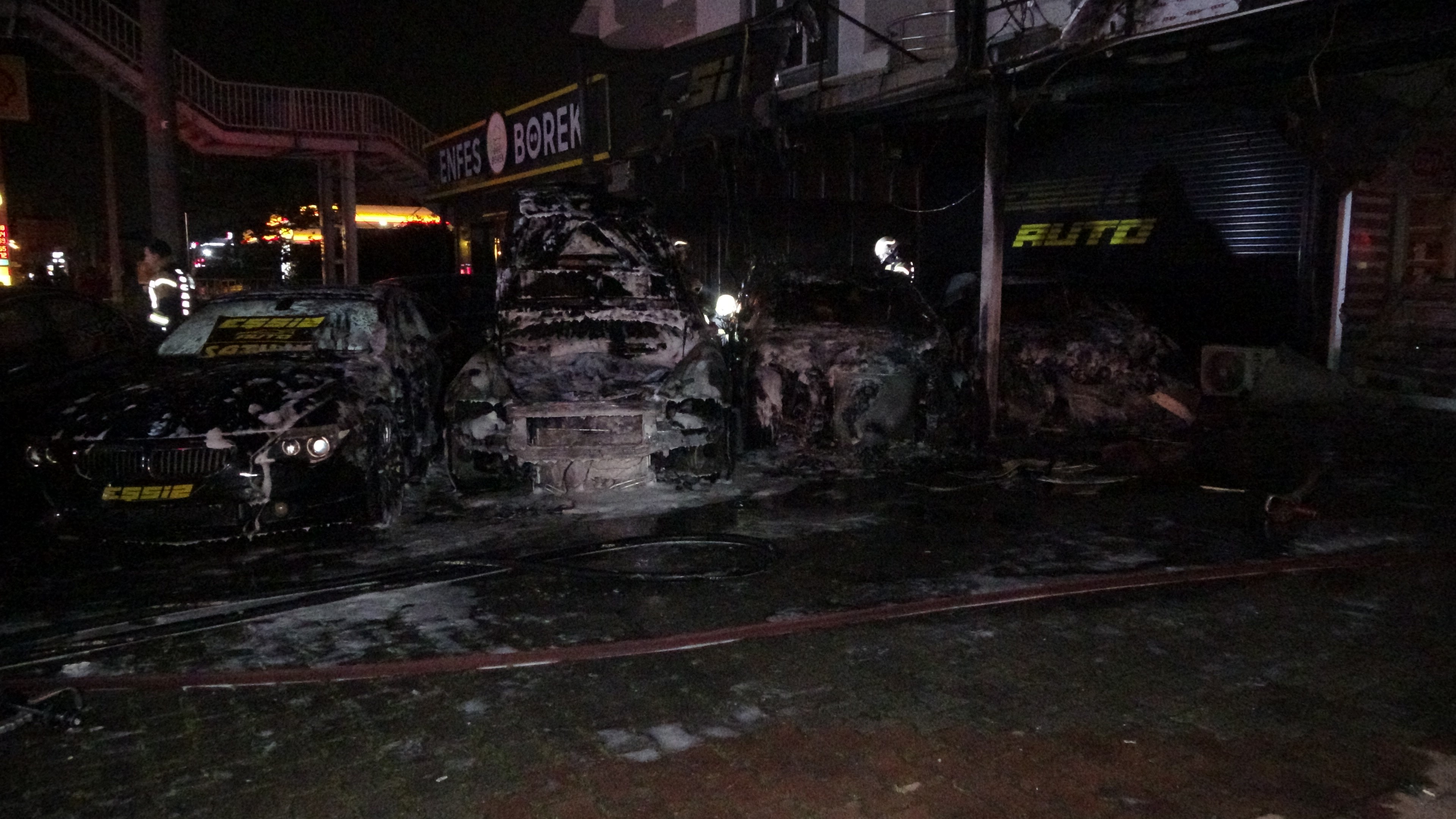 Olay, Körfez Mahallesi D-130 Kara Yolu’nda bulunan oto galerinin önünde meydana geldi. Edinilen bilgiye göre park halindeki Maserati, Jaguar, Porshe marka lüks otomobillerde henüz bilinmeyen bir sebepten dolayı yangın çıktı. Yangın kısa sürede büyürken otomobiller alev topuna döndü. Durumun 112 Acil Çağrı Merkezine haber verilmesiyle olay yerine çok sayıda itfaiye, sağlık ve polis ekibi sevk edildi. Adrese ulaşan itfaiye ekipleri yangını söndürmek için çalışma başlattı. Yangın kontrol altına alınırken, ekipler soğutma işlemi gerçekleştirildi.