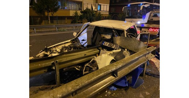 Kaza, D100 Karayolu ile TEM Otoyolu ayrımı İstanbul istikameti İzmit ilçesi Kuruçeşme mevkiinde meydana geldi. Edinilen bilgiye göre, sürücüsünün direksiyon hakimiyetini kaybettiği 41 AKP 702 plakalı Tofaş marka otomobil, yol ayrımındaki bariyerlere ok gibi saplandı. Meydana gelen feci kazayı gören vatandaşlar 112 Acil Çağrı Merkezine haber verdi. İhbar üzerine olay yerine sağlık, polis ve itfaiye ekipleri sevk edildi. Kısa sürede olay yerine gelen itfaiye erleri, araçta sıkışan şoför İ.K'yi çıkararak sağlık ekiplerine teslim etti. Sağlık ekiplerince ilk müdahalesi yapılan yaralı, hastaneye kaldırıldı.