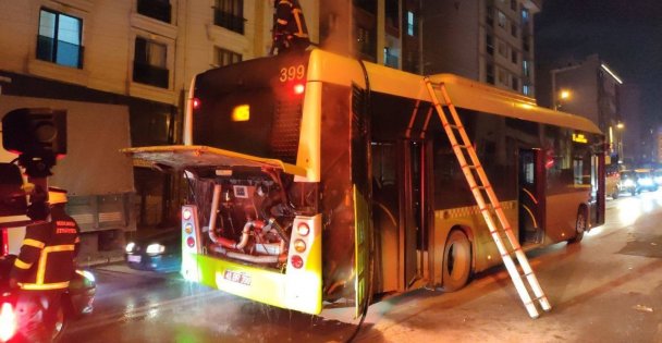Belediye otobüsünün motorunda çıkan yangın korkuttu