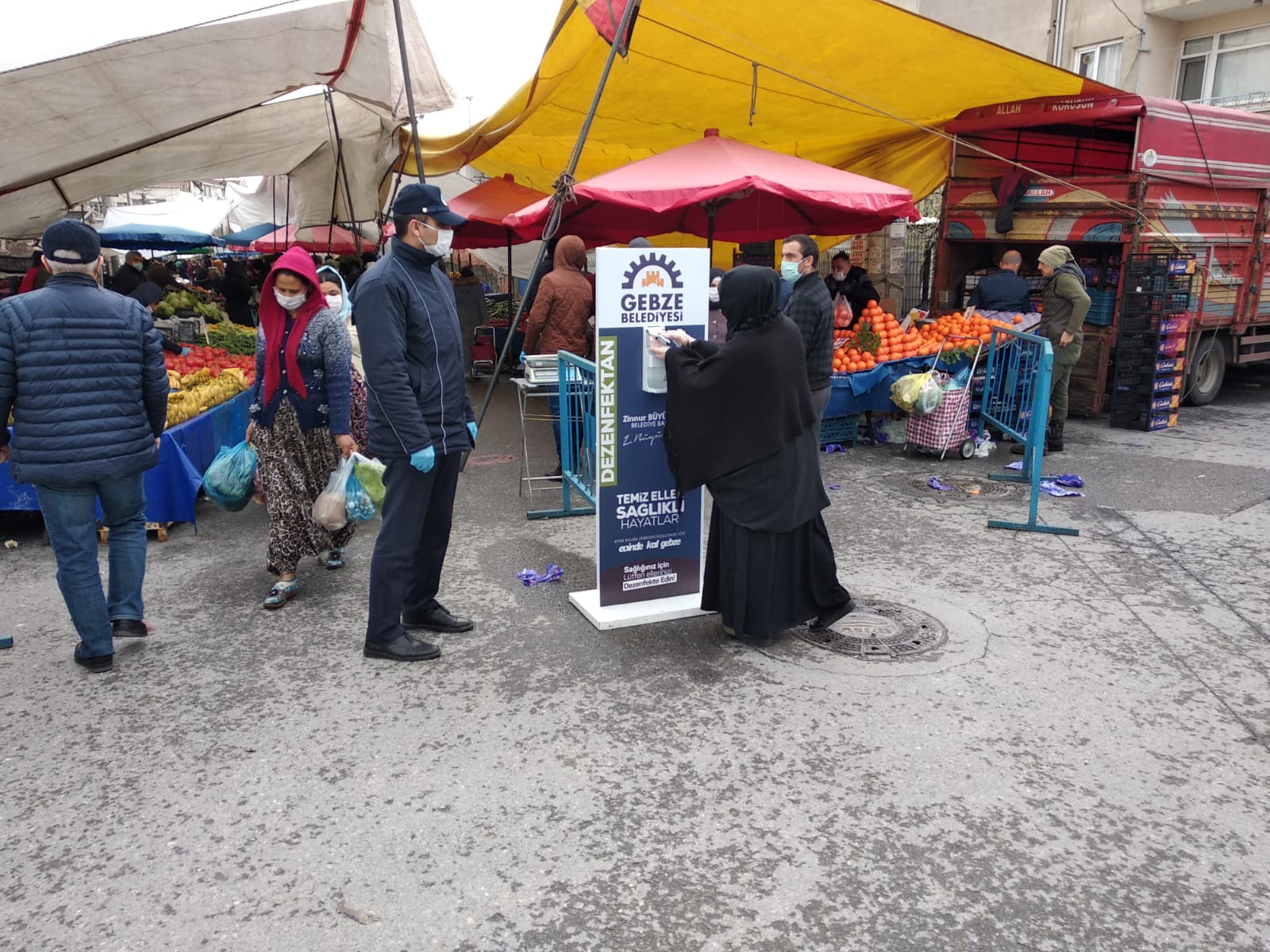 Gebze Belediyesi Zabıta ekipleri İçişleri Bakanlığı’nın yayımladığı genelgenin ardından Covıd-19 salgınının yayılmasını önlemek, vatandaşların sağlığına olumsuz etkilerini asgari seviyeye düşürmek için semt pazarlarında denetim yapıyor. Zabıta ekipleri pazar giriş ve çıkışlarına demir bariyer koyarak çocukların pazarlara alınmaması ve vatandaşların yanı sıra esnafa da maske ve el dezenfektanı dağıtıyor. Pazarcılara, genelge kapsamında maske ve eldiven takması, kişisel hijyen kurallarına uyması, yoğunluğu dağıtmak için tezgâhlar arası 3 metre kuralının ihlal edilmemesi, ambalajsız satılan yaş sebze ve meyvelerin tüketicilere temas edilmeden doğrudan pazarcı esnafı tarafından hijyen kurallarına dikkat edilerek poşetlenmesi ve satışının yapılması, tuhafiye ve giyim vb. zaruri olmayan ihtiyaç maddelerinin satışına izin verilmemesi ve pazar yerlerinin en geç saat 19:00’a kadar hizmet vermesi hususunda uyarılarda bulunan zabıta ekipleri belirtilen kurallara uymayan esnaflar hakkında da yasal işlem uyguluyor. Denetimlerin devam edeceğinin altını çizen zabıta müdürlüğü yetkilileri, vatandaşların şikayet, görüş ve önerilerini 0262 642 58 00 ve Alo 153 Zabıta hattına bildirmeleri ricasında bulundu.