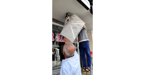 Kedinin dükkanın içinden tavana girdiğini ve mahsur kaldığını belirten Yıldırım, "Kedi arka taraftan girmiş ama çıkış yolunu bulamamış. Çıkış yolunu bulamayınca 5 dakika boyunca miyavladı. Kedi düşünce zarar görmesin diye halıların üzerine basıp aşağıya inmesini sağladık" diye konuştu.