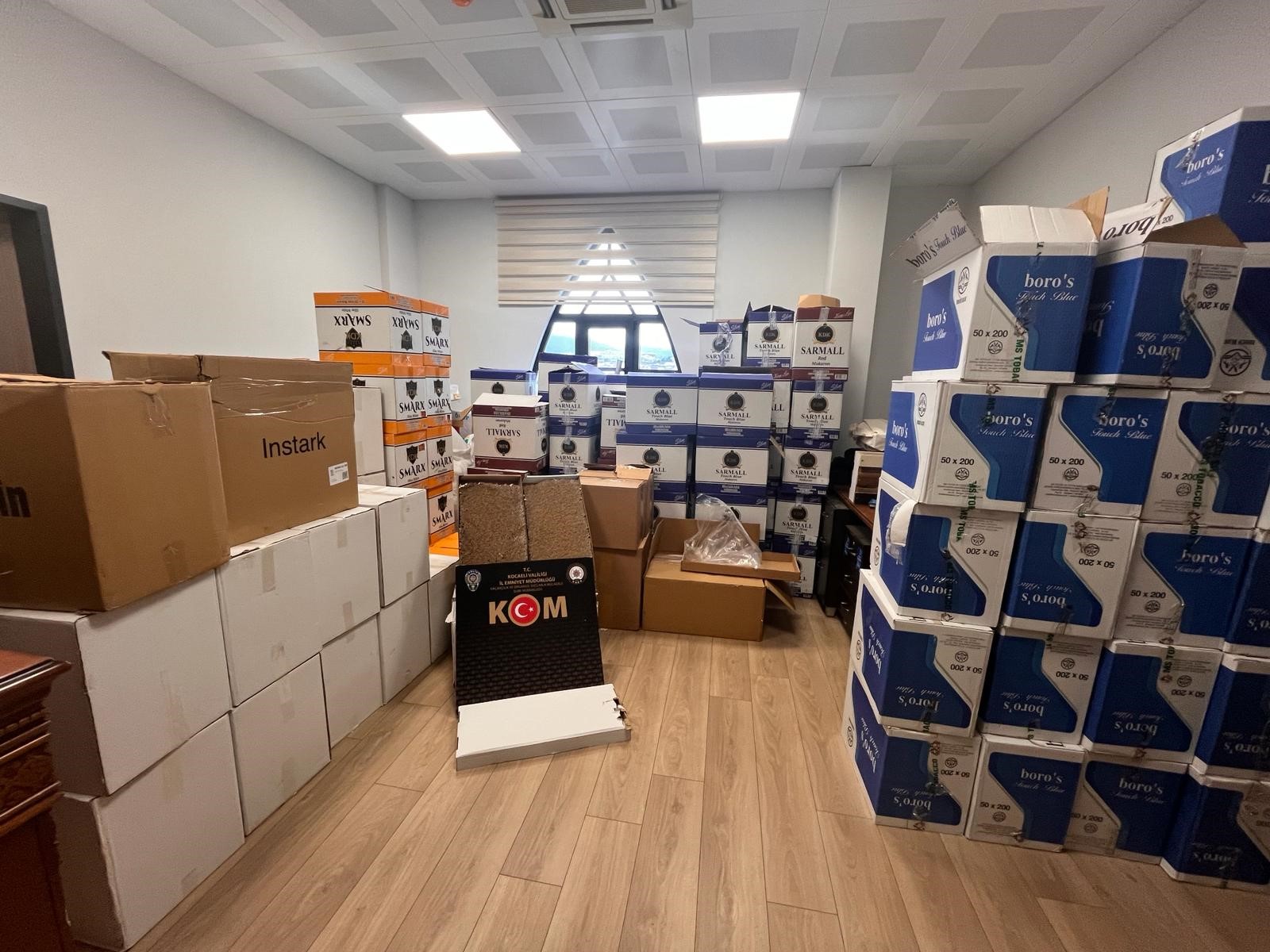 Edinilen bilgiye göre, Kocaeli Emniyet Müdürlüğü Kaçakçılık ve Organize Suçlarla Mücadele Şube Müdürlüğü ekipleri tarafından kaçakçılığın önlenmesine yönelik Gölcük ilçesinde çalışma yaptı. Ekipler tarafından yapılan çalışmalar neticesinde içerisinde kaçak ürünlerin bulunduğu depo ve işyerine baskın yapıldı. Polis ekiplerinin yaptığı operasyonda 60 bin adet içi tütün dolu makaron, 738 bin adet boş makaron ve 503 kilogram kıyılmış tütün ele geçirildi.