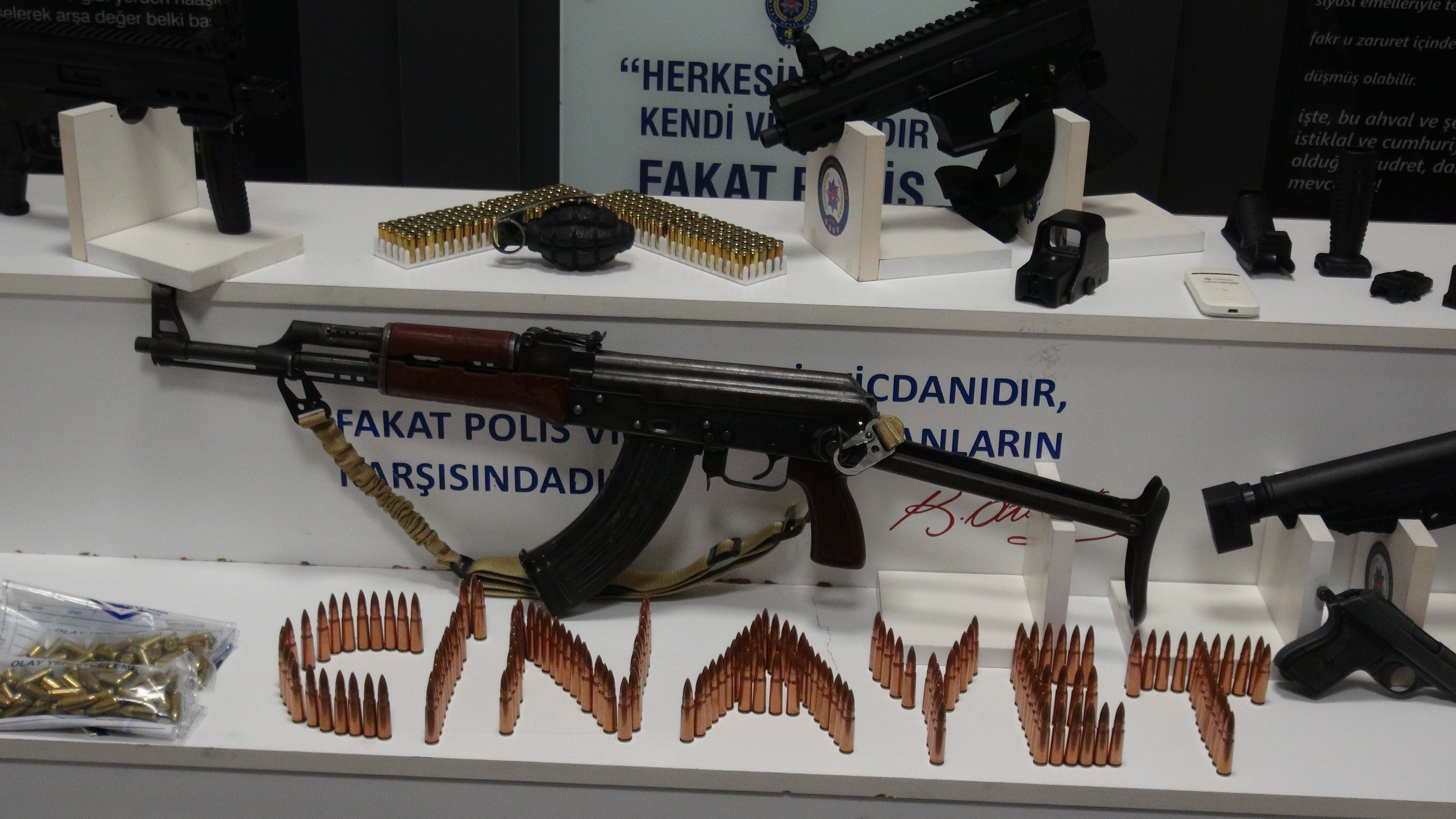 İkamette, araçta ve depoda yapılan aramalarda AK47 uzun namlulu silah ve bu silaha ait 2 adet tam dolu şarjör, yine bu silaha ait 228 adet toplamda 288 adet AK47 mermisi, 570 fişek (tabanca ve uzun namlulu silahlara ait), 31 sürgüsüz tabanca, bin 43 adet değişik çaplarda silah namlusu, 87 adet farklı silahlara ait şarjör, 34 tabanca üst sürgüsü, çok miktarda muhtelif tabanca parçaları, tabanca ve uzun namlulu silahlara ait birçok aksesuar malzemesi (Dürbün, el kundağı, dipçik), silah imalatında ve namlu değişiminde kullanılan birçok torna ve montaj aletleri ele geçirildi. Öte yandan evde yapılan aramda 27.5 gram metanfetamin ve 3 pasaportun da ele geçirildiği kaydedildi.