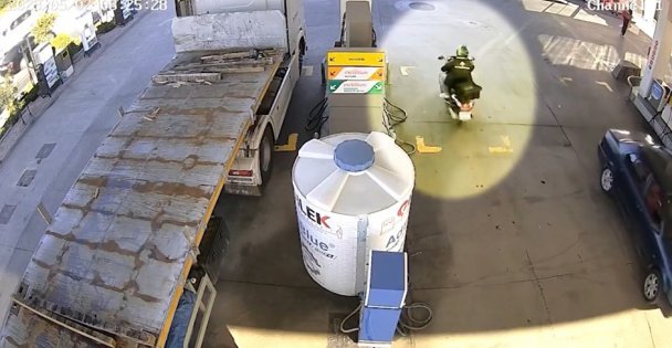 Öte yandan, cinayetten önce şüphelinin akaryakıt istasyonuna uğradığı ve motosikletiyle geçtiği sokaklar saniye saniye güvenlik kameralarına yansıdı.