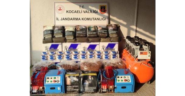 Kocaeli İl Jandarma Komutanlığı ekipleri, kaçakçılıkla mücadele kapsamında Gebze ve Körfez'de bir araç ve evde arama yaptı. Yapılan aramalarda 23 bin 800 dolu, 114 bin 200 boş olmak 138 bin makaron, 96 kilogram kıyılmış açık tütün, 2 elektrikli sigara sarma makinesi ve bir kompresör ele geçirildi. 2 şüpheli şahıs hakkında adli işlem başlatıldı.