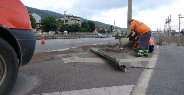 Öte yandan Karayolları Genel Müdürlüğüne bağlı ekiplerce kaza yeri temizlenirken, hasar gören bariyerler ise tamir edildi.