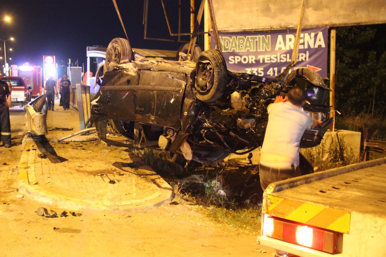 Kaza, Körfez Mahallesi Oramiral Salim Dervişoğlu Caddesi üzerinde meydana geldi. Edinilen bilgiye göre, cadde üzerinde seyir halinde olan ve ismi öğrenilemeyen 54 ZK 536 plakalı Skoda marka otomobil sürücüsü, direksiyon hakimiyetini kaybetmesi neticesinde kaldırma çarparak takla attı. Adeta kağıt gibi ezilen otomobilde, H.K., B.C., S.E.C. ve E.K. yaralandı. Durumun haber verilmesi üzerine olay yerine sağlık, polis ve itfaiye ekipleri sevk edildi. Olay yerine gelen itfaiye ekipleri yaralıları otomobilden çıkartarak sağlık ekiplerine teslim etti. Yapılan ilk müdahale sonrasında yaralılar hastaneye kaldırılırken E.K.’nin durumunun ağır olduğu öğrenildi. Kaza sebebiyle trafik yaklaşık 1 saat tek şeritten sağlandı. Konuya ilişkin olarak polis ekipleri inceleme başlattı.
