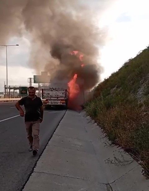 Yangın anını anlatan tır sürücüsü Ramazan Altundiş, "Kavşağı inerken arkamdan bir taksi selektör yapmaya başladı. Önüme geçti, işaret etti, durdum. Aynadan baktığımda arka sağ çekerden alev çıktığını gördüm. O arada zaten aracı emniyet şeridine çekip durdurdum” dedi.