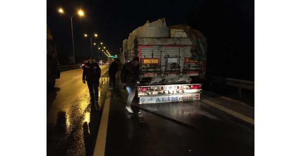 Olay, Körfez TEM Otoyolu Ankara istikametinde meydana geldi. Edinilen bilgiye göre, Mustafa Ş. yönetiminde seyir halinde olan 63 AEV 793 plakalı tırın lastiği alev aldı. Durumu fark eden sürücü hemen aracı durdurdu. Sürücü ve çevredeki vatandaşlar yangın tüpüyle alevlere müdahale ederken itfaiye ekiplerine de haber verdi. İhbar üzerine kısa sürede olay yerine gelen itfaiye ekipleri, yangını arabanın tamamına sıçramadan söndürdü. Yangın sebebiyle uzun araç kuyrukları oluştu. Polis olayla ilgili inceleme başlattı.