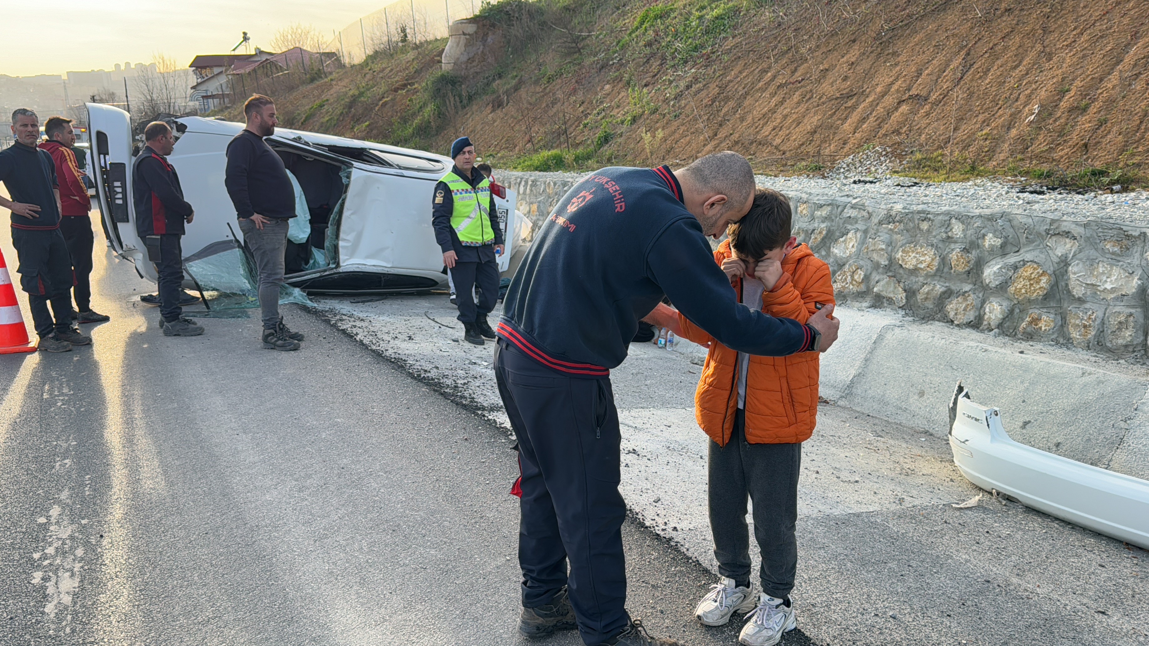 Çayırköy Mahallesi Kandıra-İzmit yolunda meydana gelen kazada, sürücüsü öğrenilemeyen 16 BM 055 plakalı otomobil, 300 metre gerideki virajda kontrolden çıkarak takla attı. Otomobilde bulunan 4 kişilik aile kazayı yara almadan atlattı. Kazayı görenler ailenin yardımına koştu. İhbar üzerine ise adrese itfaiye, sağlık ve polis ekipleri sevk edildi. Kazanın ardından gözyaşlarını tutamayan anne ve çocuk, olay yerindekiler tarafından teskin edilmeye çalışıldı. Aile üyeleri, tedbir amacıyla hastaneye kaldırıldı.