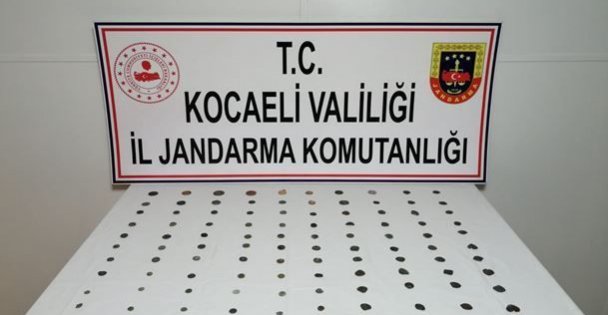 Gebze ilçesinde düzenlenen tarihi eser operasyonunda 100 sikke ele geçirildi.