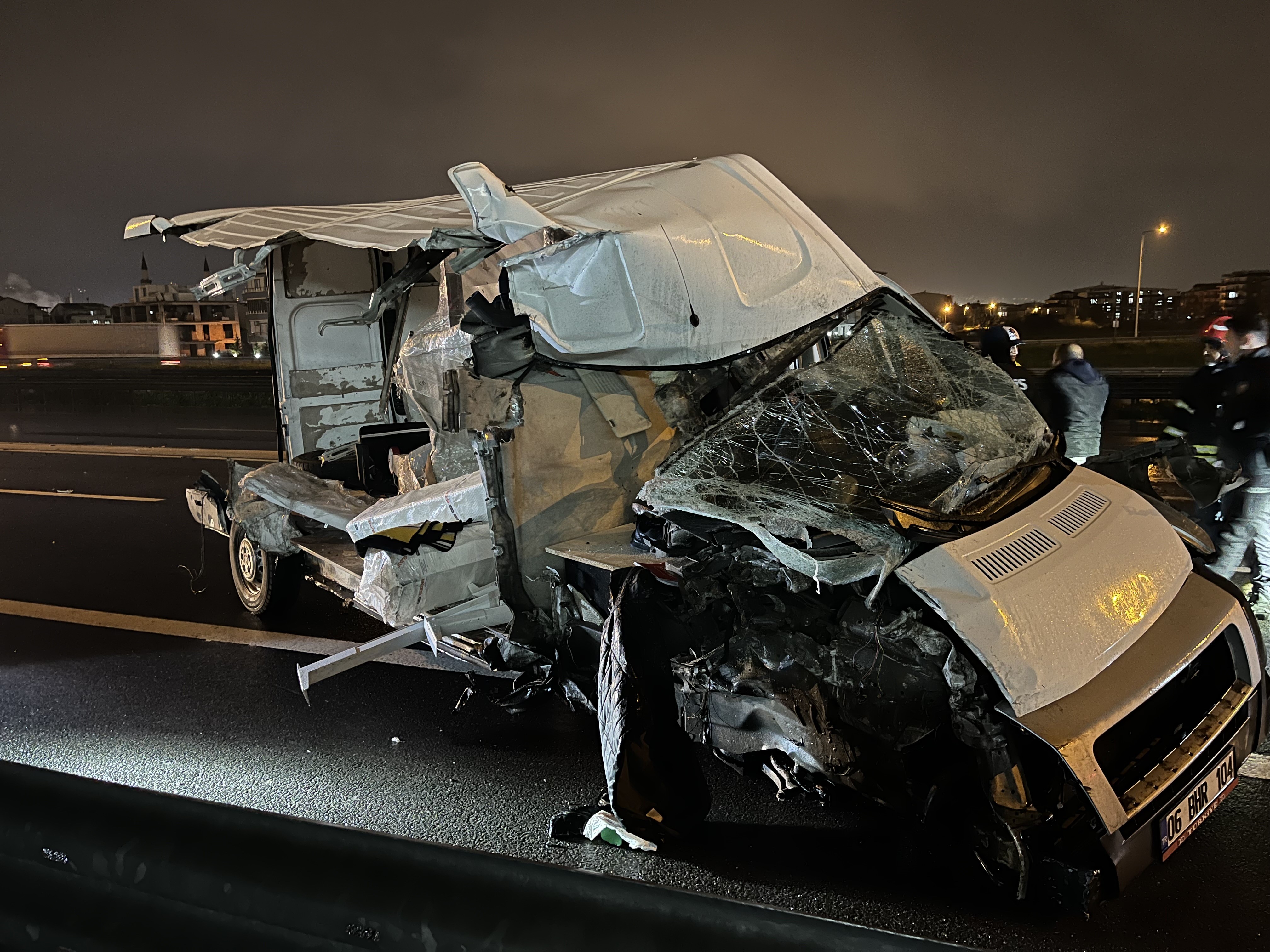 TEM Otoyolu’nun Kocaeli geçişinde traktör yüklü tıra arkadan çarpan panelvan, ortadan ikiye bölündü. Yola savrulan panelvan başka bir tırın çarpmasıyla 90 metre sürüklenirken, sürücü ağır yaralandı.
