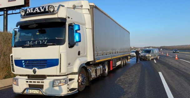 Öte yandan 2 kişinin yaralandığı kaza anı, bir iş yerinin güvenlik kamerası tarafından kaydedildi. Görüntülerde otomobilin yağışlı yolda kaydığı ve karşı şeritten gelen tırın arka tarafına çarparak savrulduğu görülüyor.