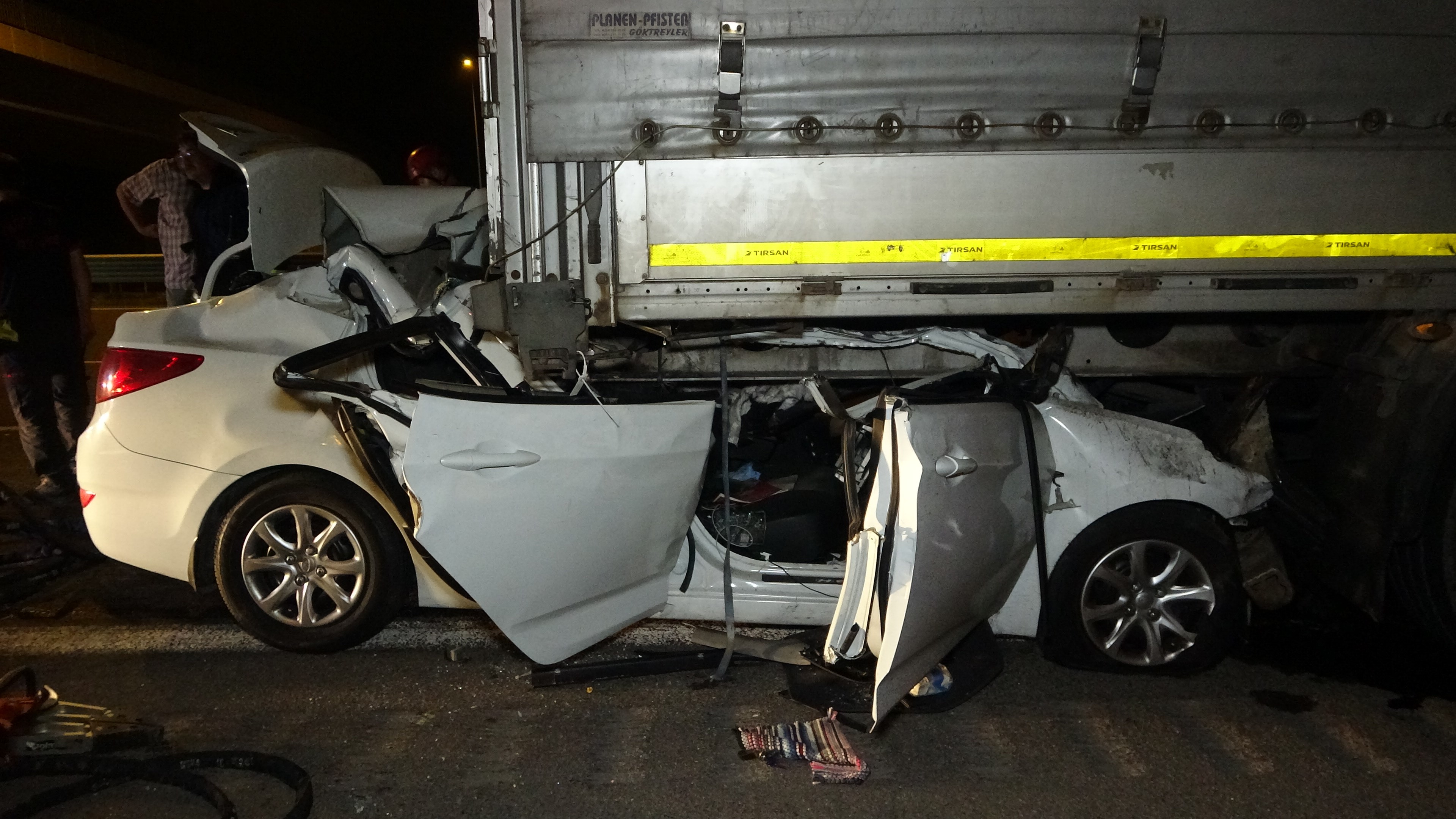 Kaza, Körfez ilçesi Kuzey Marmara Otoyolu Sevindikli mevkiinde meydana geldi. Edinilen bilgiye göre, Ankara istikametinde seyir halinde olan Ahmet Furkan Aytekin (24) idaresindeki 34 KK 5228 plakalı Hyundai marka otomobil, aynı yönde giden, Y.D. hakimiyetindeki 52 K 6062 plakalı Scania marka tıra arkadan çarptı. Çarpmanın şiddetiyle otomobil tırla birlikte 50 metre sürüklendi. Dorsenin altına giren otomobil adeta kağıt gibi ezildi. Tır sürücüsü kazayı 112 Acil Çağrı Merkezine ihbar verdi. İhbar üzerine adrese itfaiye, sağlık ve jandarma ekipleri sevk edildi. Sağlık ekiplerince yapılan tetkiklerde otomobil sürücüsü Ahmet Furkan Aytekin’in hayatını kaybettiği tespit edildi.