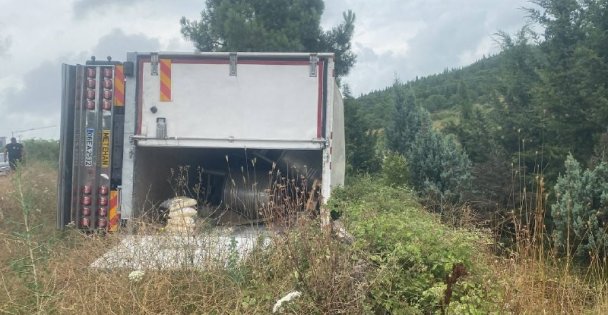 Gebze ilçesinde sürüsünün direksiyon hakimiyetini kaybettiği kamyon ağaçlık alana devrildi. Yaralanan sürücü hastaneye kaldırıldı.