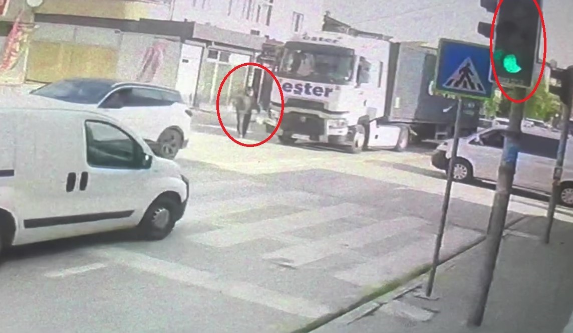 Kaza anı iş yerinin güvenlik kamerasına yansıdı. Görüntülerde kırmızı ışıkta tırın durduğu, yeşil ışıkta hareket haline geçerken yola çıkan yayaya çarptığı görüldü.