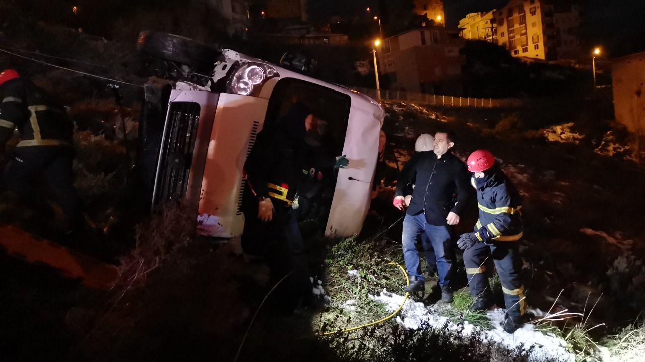 Kaza Gebze Adem Yavuz Mahallesi 2148 Sokak üzerinde meydana geldi. Edinilen bilgiye göre, M.A. idaresindeki 34 LVU 468 plakalı servis minibüsü, yokuş aşağıya indiği sırada sürücüsünün direksiyon hakimiyetini kaybetmesiyle birlikte yoldan çıktı. Şarampolde takla atan minibüsün sürücüsü, aracında sıkışarak yaralandı. Kazayı görenler, durumu 112 Acil Çağrı Merkezi’ne bildirdi. İhbar üzerine adrese itfaiye, sağlık ve polis ekipleri sevk edildi. Kısa sürede adrese ulaşan itfaiye ekipleri, minibüste sıkışan sürücüyü kurtarabilmek için çalışma başlattı. Ekiplerin çalışmalarının ardından araçtan çıkarılan sürücü sağlık ekiplerine teslim edildi. Olay yerinde ilk müdahalesi yapılan sürücü, daha sonra sedyeyle ambulansa alınarak tedavi edilmek üzere Gebze Fatih Devlet Hastanesi’ne kaldırıldı. Sürücünün hayati tehlikesinin bulunmadığı öğrenilirken, kazaya karışan minibüs vinç yardımıyla çekiciye yüklendi. Polis ekipleri kazayla ilgili inceleme başlattı.