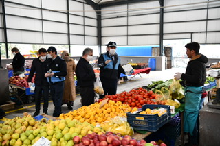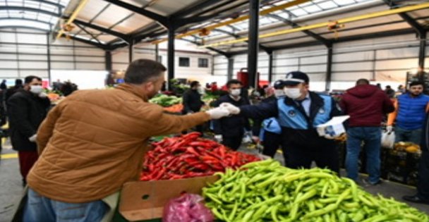 Çayırova Belediyesi Zabıta Müdürlüğü ekipleri, Cumhuriyet Mahallesi’nde kurulan kapalı pazarda koruyucu maske dağıttığı esnafı hijyen kurallarına uymaları konusunda uyardı. Çayırova Belediyesi, dezenfekte ve denetim çalışmalarını tüm hızıyla sürdürüyor. Vatandaşların sağlığını korumak ve salgının yayılmasını önlemek amacıyla önlemler alan Çayırova Belediyesi, Kapalı pazarda esnaflara maske dağıttı. Hijyen noktasında da uyarılarda bulunan ve alışveriş yapan vatandaşları da bilgilendiren ekipler, özellikle tezgah arkasındaki esnafların tam teşekküllü tedbir almaları ve ürünlerin paketlenerek vatandaşa teslim edilmesi gerektiğini söyledi. Zabıta Müdürlüğü ekipleri, tezgah aralarındaki mesafeleri de ölçerek kurallara uymayan esnaflara uyarılarda bulundu.