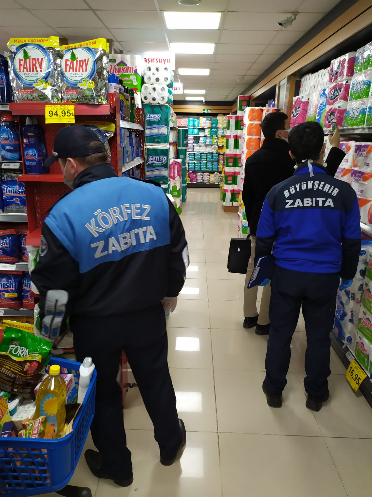 Zabıta ve İl Ticaret Müdürlüğü ekipleri, Kocaeli İl Umumi Hıfzısıhha Kurulu’nun aldığı kararların sahadaki denetimlerini titizlikle yapıyor. Market, eczane ve diğer işyerlerinde yapılan denetimler haksız fiyat artışı (fahiş fiyat), satıştan kaçınma, hijyen kontrolü, işyerlerinde çalışanların koruyucu maske ve eldiven kullanımı, hizmet sunulan işyerinde en fazla kaç müşteri olması, market içerisinde müşterilerin arasına mesafe koyması ve market girişlerinde el dezenfektanı bulunması gibi birçok kuralın uygulanıp uygulanmadığı denetleniyor. Ayrıca alınan karar gereği maske satışının yasaklandığı işyerlerine hatırlatılıyor.
