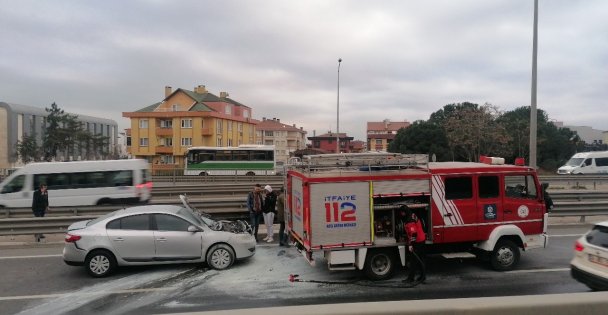 Kaza, Kocaeli’nin Gebze ilçesi Hacı Halil Mahallesi D-100 Karayolu İstanbul istikametinde meydana geldi. Edinilen bilgiye göre, yol üzerinde seyir halinde olan Halil Mert C. idaresindeki 34 GA 116 plakalı Honda marka otomobilin sürücüsü, trafiğin yoğunlaşması ile aniden frene bastı. Bunun ardından hemen arkasında seyir halinde olan Dilek A. yönetimindeki 34 JG 7111 plakalı otomobil ve İbrahim Ö. idaresindeki 34 DSZ 292 plakalı kamyonet birbirine girdi. Kazanın şiddetiyle Dilek A. yönetimindeki araçta yangın çıkarken, sürücü ise yaralandı. Kazayı görenler, durumu 112 Acil Çağrı Merkezi’ne bildirdi. İhbar üzerine adrese itfaiye, sağlık ve polis ekipleri sevk edildi. Kısa sürede adrese ulaşan itfaiye ekipleri, araçta çıkan yangına müdahale etti. İlk müdahalesi olay yerinde yapılan yaralı, daha sonra ambulansa alınarak tedavi edilmek üzere Darıca Farabi Eğitim ve Araştırma Hastanesi’ne kaldırıldı. Tedaviye alınan yaralının hayati tehlikesinin bulunmadığı öğrenildi. Kazayla ilgili inceleme başlatıldı. (IHA)