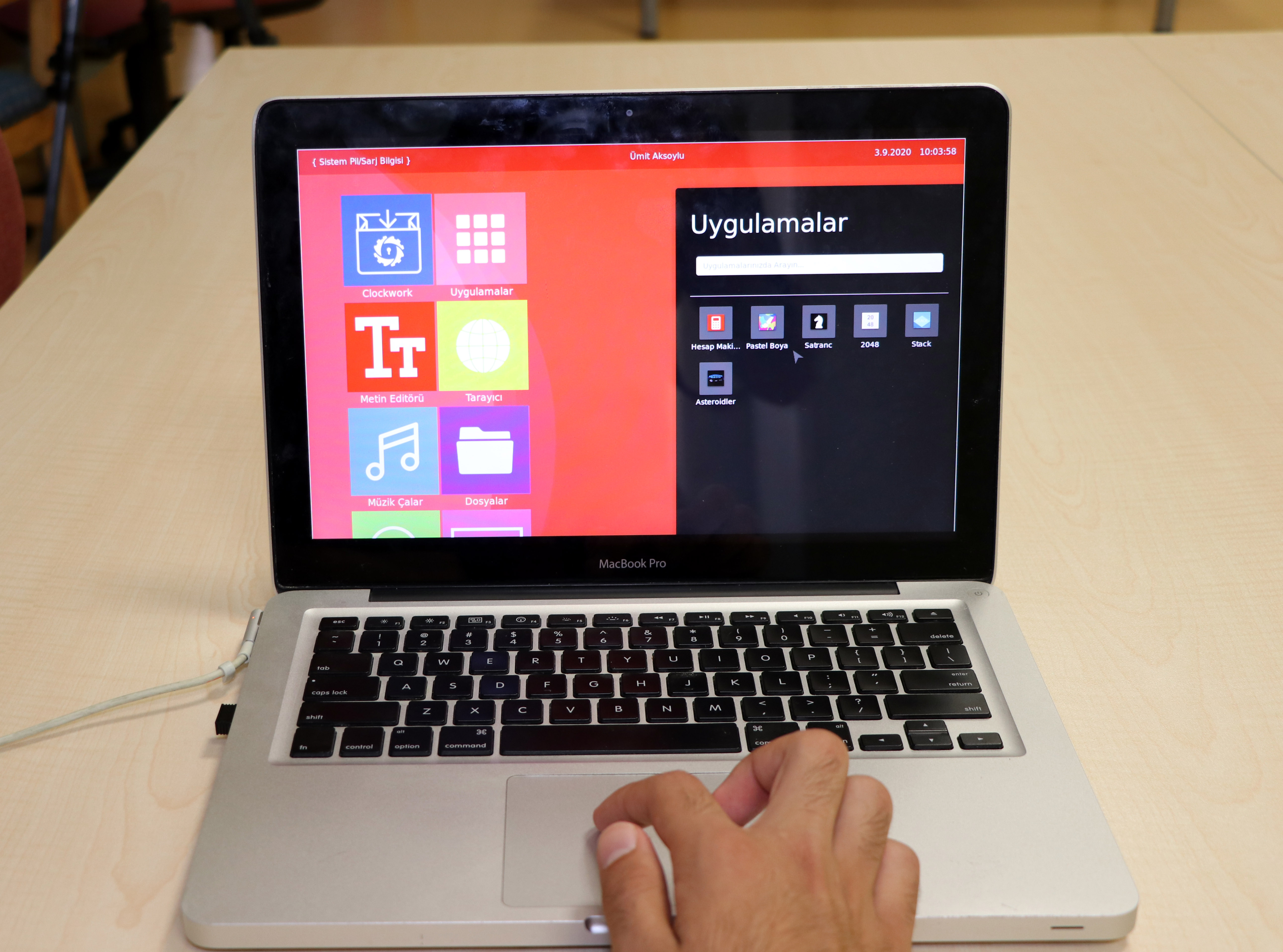 "Bilmediğiniz bir kodu yazamazsınız. Hatta yazdığım kodun en az 3 katı da kaynak okudum. Windows ve Mac gibi kendi ara yüzümüzü tasarladım. Bu işletim sisteminin kendine ait uygulama menüsü var, kendine ait uygulama programı var, hatta Google Play Store gibi uygulama marketi de var. Tamamen dışa bağımlılıktan bizi soyutlayan bir işletim sistemiyle karşı karşıyayız çünkü kendi marketine sahip olduğu için ileride bizim geliştireceğimiz bir platformla diğer yazılım geliştiriciler bu platforma uygulama geliştirip markete koyabilecek. Sistem market dışındaki uygulamaları desteklemediği için tamamen dıştan yalıtılmış, dışarıya veri alıp göndermeyen bir işletim sistemi. Dışarıdan uygulama indirip kuramadığınız için drojenlerin de yüzde 80'i bu yolla bulaştığı için hacklenme anlamında koruma sağlıyor."