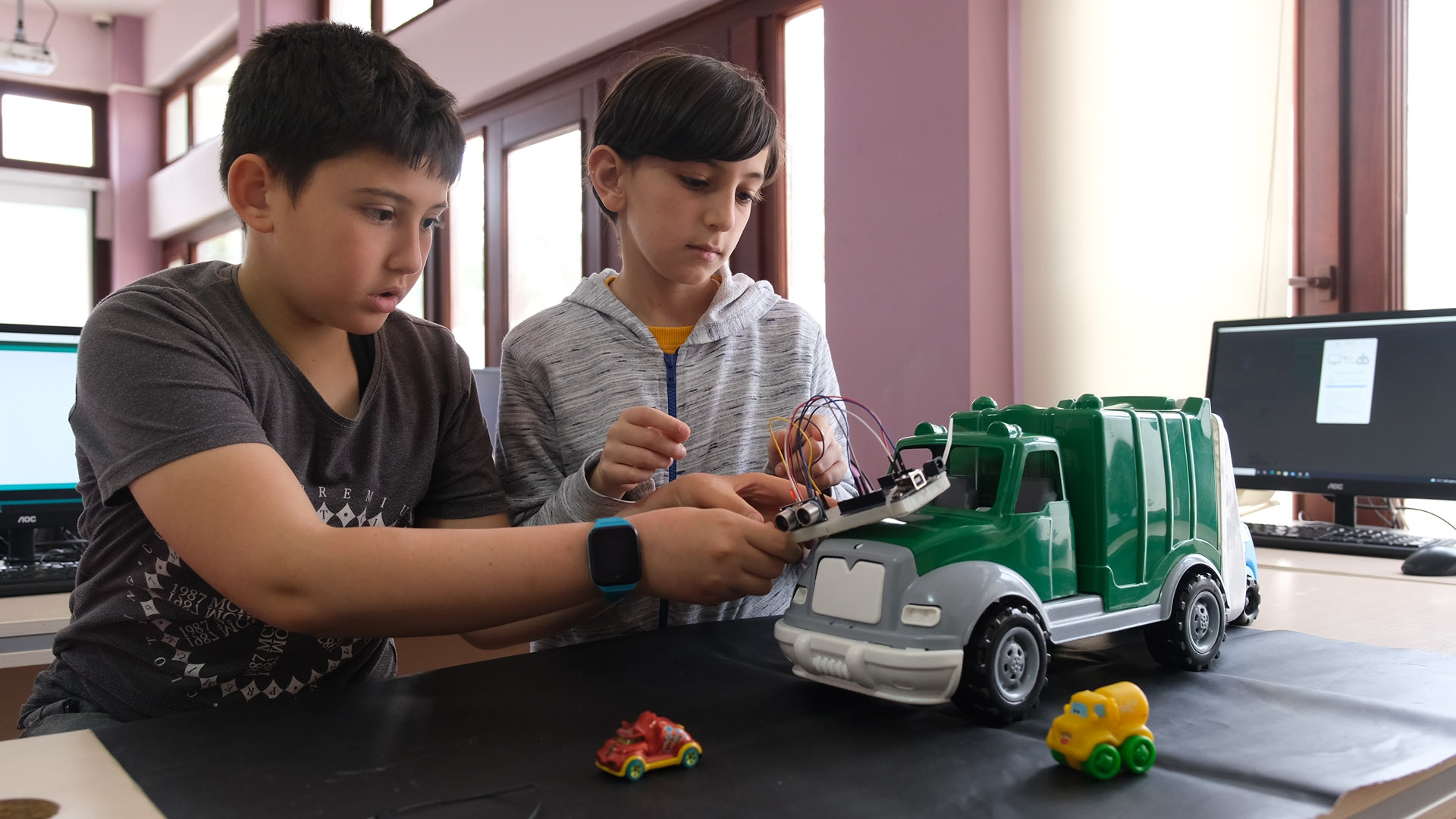 Bu kapsamda Bilgievlerinde robotik kodlama eğitimleri sonucunda başarı gösteren yetenekli öğrencilerin olduğu proje sınıfındaki öğrencilerle bilişim öğretmenlerinin kontrolünde, güncel teknoloji takip edilerek, çevre, doğa ve insan hayatını kolaylaştırmaya yönelik, sosyal inovasyon konularında beyin fırtınası yapıldı ve uygulanabilirliğine karar verilen fikirler projeye çevrildi. Bu kapsamda Emirler takımı (ilkokul): Otomatik kapanan buzdolabı kapağı projesi, Uzmanlar takımı (ilkokul): Akıllı enerji projesi, Kılavuz takımı (ortaokul): Secure Track ve Futbol yıldızları takımı (ortaokul /ilkokul): Futbol Hakemi projelerini ortaya çıkardı. Bilişim sınıfında öğrencilerle projenin elektronik devre tasarım çalışmaları devam ediyor.