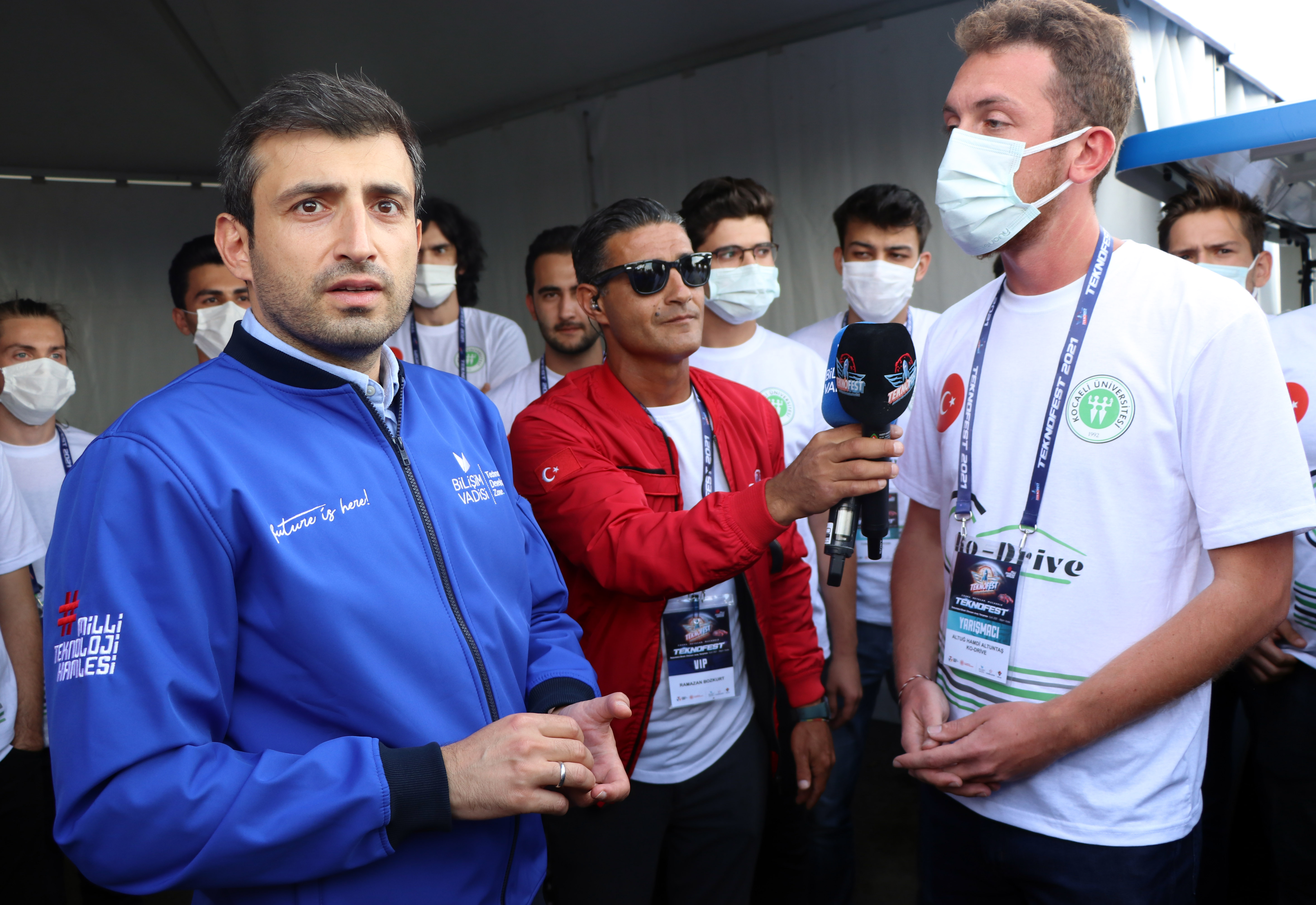 Bilişim Vadisi'nde gerçekleştirilen yarışlar için kurulan pist alanında takımları, Bilişim Vadisi Genel Müdürü Serdar İbrahimcioğlu ve beraberindekilerle ziyaret eden Bayraktar, katılımcılarla sohbet etti.