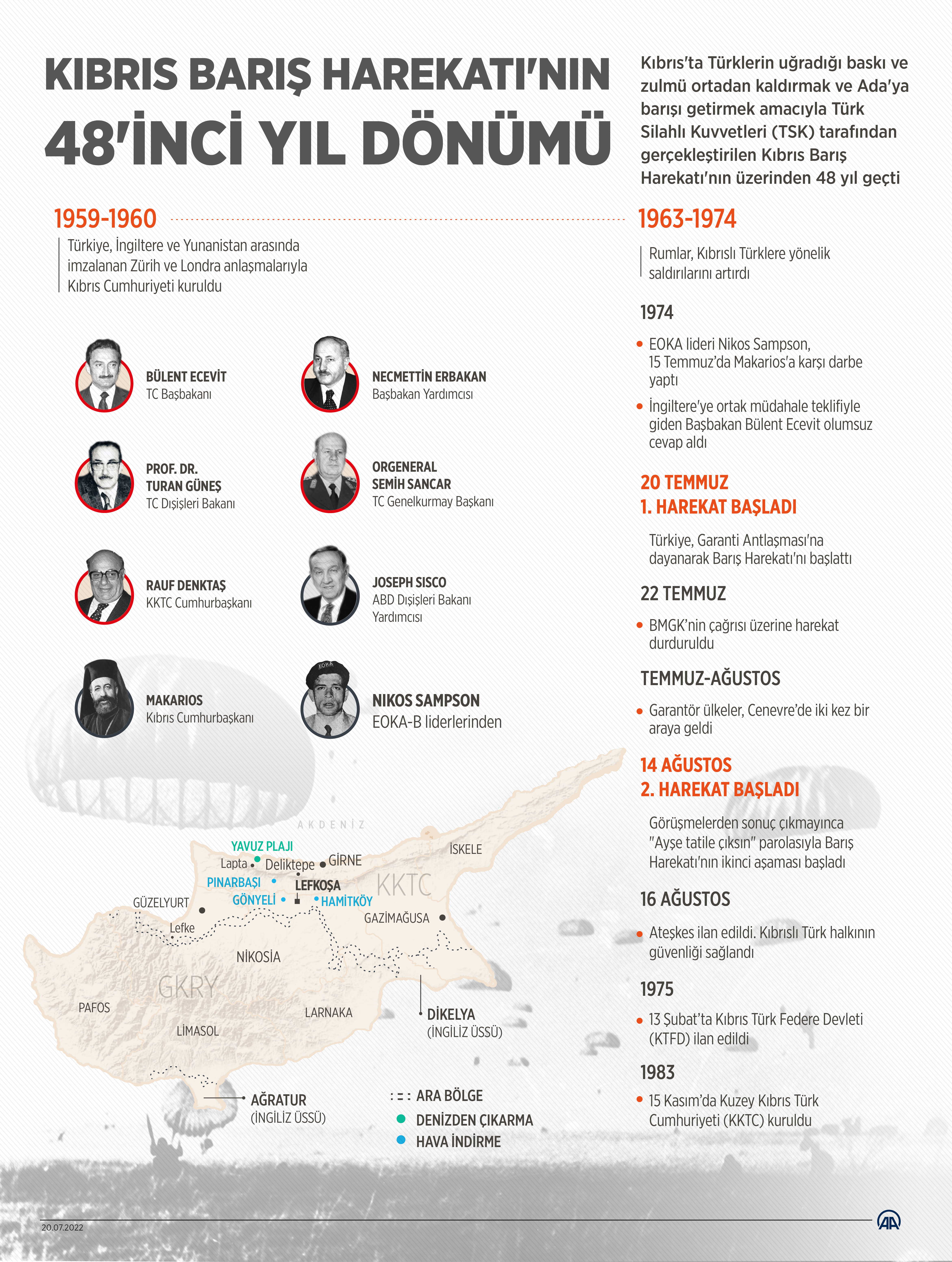 Kıbrıs'ta Türklerin Rumlar tarafından uğradığı baskı ve zulmün önüne geçmek ve Ada'da barış ve huzuru tesis etmek amacıyla Türk Silahlı Kuvvetleri (TSK) tarafından gerçekleştirilen Kıbrıs Barış Harekatı'nın üzerinden 48 yıl geçti.