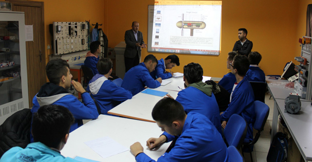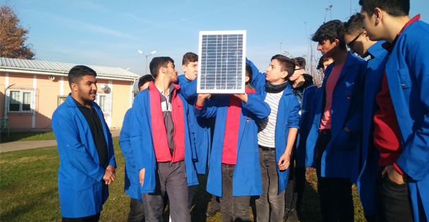 Bu yıl ilk kez Elektrik bölümünde eğitim gören öğrencilere geleceğin sektörü olan yenilenebilir enerji dersleri verilmeye başlandı. İlk günün heyecanıyla teneffüse çıkmayı unutan öğrenciler, güneş enerjisi ve rüzgâr enerjisi üzerine yapılacak çalışmaların ilk aşamasında Güneş Paneli gözelerini tanıyarak; ölçü aletleri ile odada ve merkez çevresinde, gün ışığı ve floresan ile örnek çalışma gerçekleştirdi.