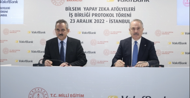 Milli Eğitim Bakanlığı ve VakıfBank arasında düzenlenen Bilsem Yapay Zeka Atölyeleri İş Birliği Protokol Töreni, Milli Eğitim Bakanı Mahmut Özer, Milli Eğitim Bakan Yardımcısı Doç. Dr. Osman Sezgin, VakıfBank Genel Müdürü Abdi Serdar Üstünsalih, İstanbul Vali Yardımcısı Hasan Hüseyin Can, Üsküdar Kaymakamı Adem Yazıcı, Üsküdar Belediye Başkanı Hilmi Türkmen, İstanbul Üniversitesi Rektörü Prof. Dr. Mahmut Ak, İstanbul İl Milli Eğitim Müdürü Levent Yazıcı ile Özel Eğitim ve Rehberlik Genel Müdürü Cemal Özdemir'in katılımıyla gerçekleştirildi.