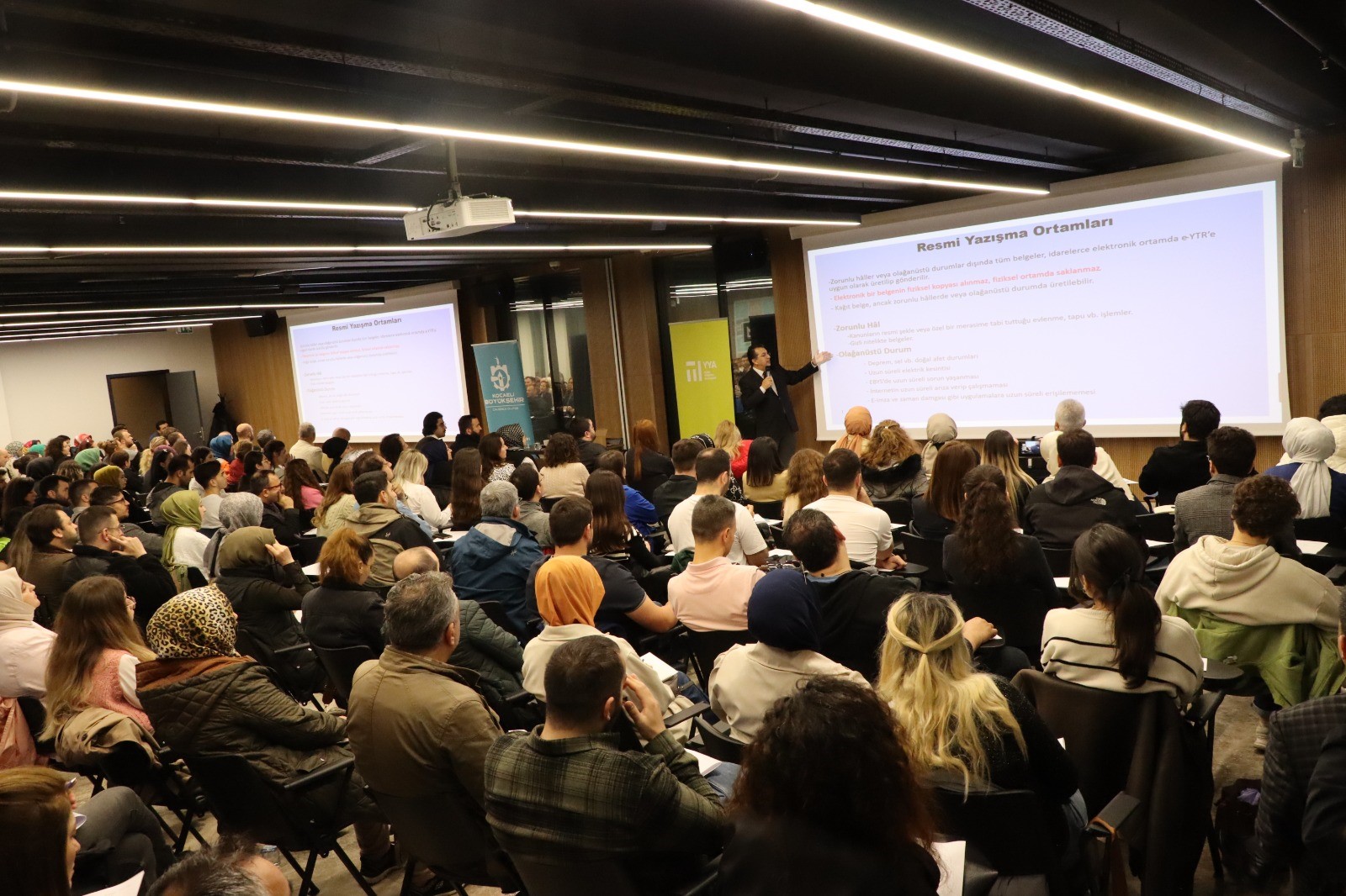 Kocaeli Büyükşehir Belediyesi, personelin mesleki gelişimini artırmaya yönelik kurum içi eğitimlerine devam ediyor. Bu çerçevede “Resmi Yazışma Kuralları Eğitimi” ve “Etkili Yazışma Teknikleri Eğitimi” Kocaeli Kongre Merkezi’nde gerçekleştirildi. İnsan Kaynakları ve Eğitim Dairesi Başkanlığı’nca düzenlenen eğitim Prof. Dr. Niyazi Çiçek tarafından verildi. Eğitimde; resmi yazışmada uygulanacak usul ve esaslar hakkında yönetmelik, elektronik belge yönetimi, resmi yazışma ortamları, nüsha sayısı, boyut ve yazı tipi, başlık ve logo, sayı, tarih, konu, muhatap, imza ve türleri, yetki devri, imza devri gibi konular ayrıntılı olarak ele alındı.