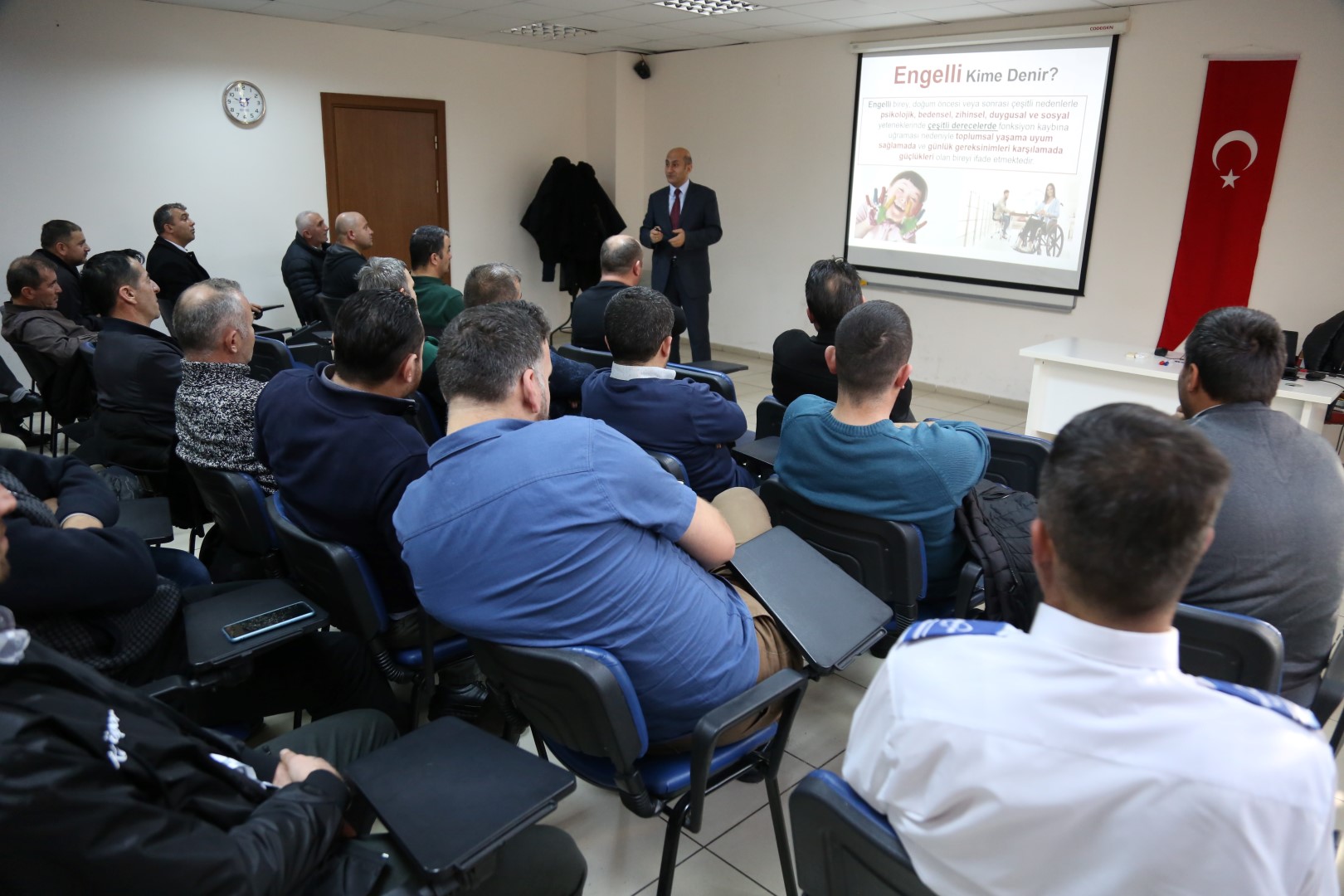 Sürücüler ile yolcu arasındaki ilişkileri olumlu yönde geliştirmek ve farkındalık oluşturmak amacıyla sunulan ‘Sürücü-engelli yolcu iletişimi’ eğitimi tam gün sürdü. 30 kişilik gruplar halinde verilen eğitim, kent genelindeki tüm sürücülere verilecek. Her türlü teknik bilginin sunulduğu eğitimlerde, engelli yolculara yönelik nasıl davranılması gerektiğine dair konular da işlendi. Sürücülerin engelli bireylere karşı doğru davranış sergilemesi ve engellilere yönelik farkındalığın arttırılması amaçlanıyor.