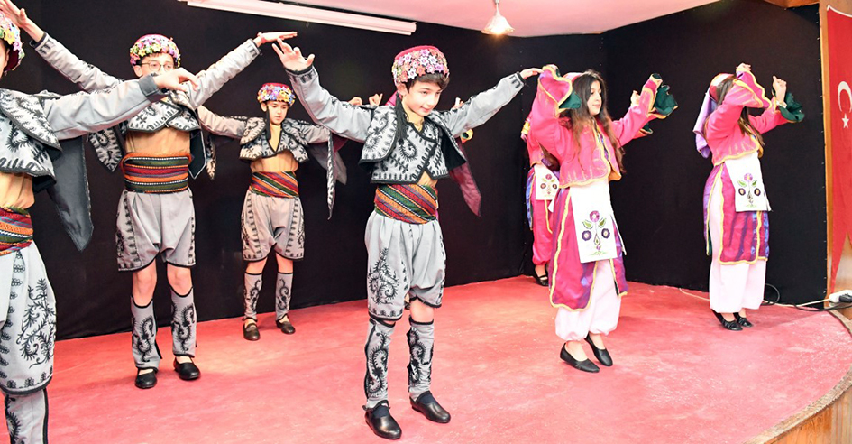 Saygı duruşunda bulunulması ve İstiklal Marşı'nın okunmasıyla başlayan programda, öğrenciler tarafından Ege bölgesine ait halk oyunu gösterisi yapıldı.