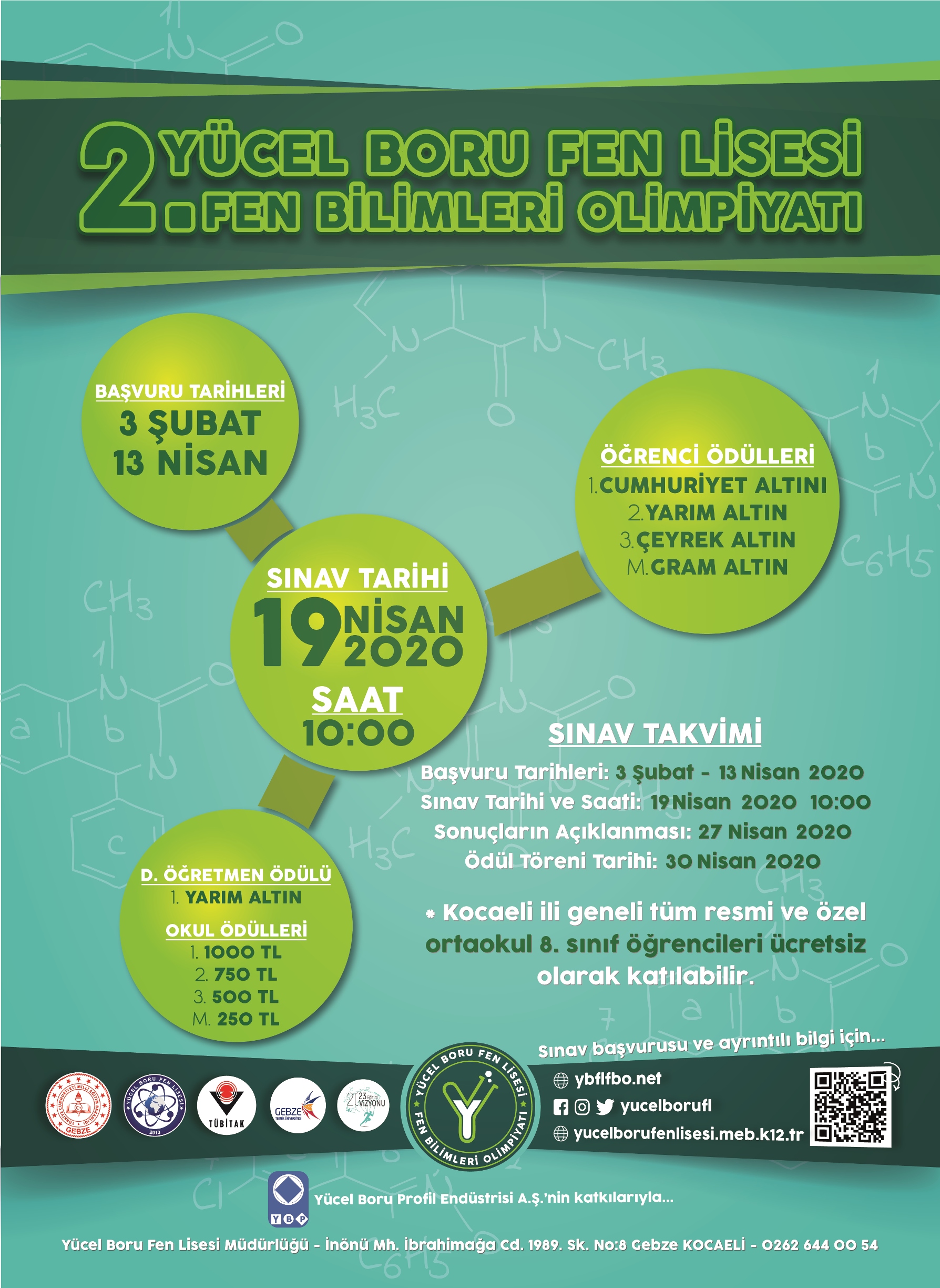 Okul Müdürü İsmail BOĞA ''Geçen yıl birincisini düzenlediğimiz olimpiyat yarışmamıza ilimiz genelinde yoğun bir katılım olmuştu. TÜBİTAK ve Gebze Teknik Üniversitesi'nden akademisyenlerden oluşan olimpiyat komitemiz soru hazırlama aşamasında büyük katkı sağlıyorlar. İlçe Milli Eğitim Müdürlüğümüz ve Yücel Boru ve Profil Endüstri A.Ş yönetim kurulunun destekleriyle gerçekleştireceğimiz 2. Fen Bilimleri Olimpiyatımıza bu yıl da yoğun katılım bekliyoruz.