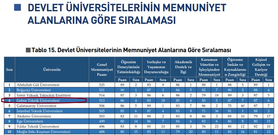 Lisans düzeyindeki üniversite öğrencilerinden geri bildirimler toplayarak Türk Yükseköğretim Sisteminin gelişimine katkı sağlamak amacıyla Üniversite Araştırmaları Laboratuvarı (ÜniAr) tarafından hazırlanan ‘Türkiye Üniversite Memnuniyet Araştırması 2020’ sonuçları açıklandı. Bir önceki araştırmada Genel Memnuniyet Sıralamasında 5. olan Gebze Teknik Üniversitesi (GTÜ) bir kademe yükselerek 4. sıraya yerleşti. Altı farklı kategoride yapılan memnuniyet araştırmasında GTÜ 5 alanda A Plus derecesi alarak önemli bir başarıya imza attı. Ayrıca GTÜ Rektörü Prof. Dr. Muhammed Hasan Aslan, TÜMA 2020'de “ÜniAr Üstün Performans Bronz Ödülü” ne layık görüldü.