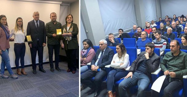 Mühendisler tarafından yoğun ilgi gören seminerin bitiminde soru-cevap kısmında söz alan İnşaat Mühendisleri Odası Kocaeli Şube Başkanı Kahraman Bulut, önce sunumu gerçekleştiren Yapı Denetim Şube Müdürü Hilal Esat Yorulmaz’a ve Yapı Denetim Şube Müdürlüğü'nde görevli İnşaat Mühendisi Rabia Cömert'e paket takdiminde bulundu. Bulut, ll müdürlüğü yetkilileri ile seminere katılan mühendislere teşekkür etti.