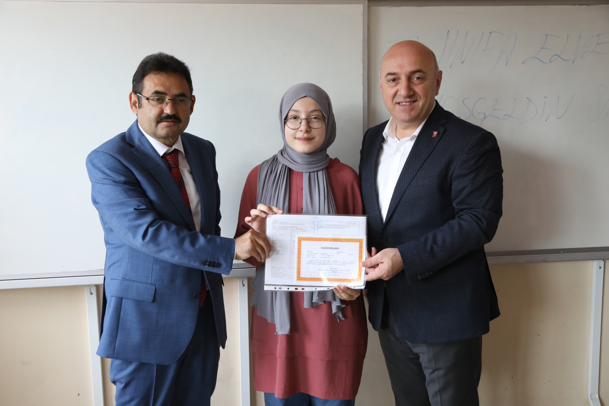 Aynı zamanda kendi kızı Merve Bıyık’ın da Şehit Hasan Kaya İmam Hatip Ortaokulu’nda düzenlenen karne törenine katılan Başkan Muzaffer Bıyık, kızıyla birlikte diğer öğrencilerin de karnelerini dağıtarak tebriklerini iletti. Darıca Fen Lisesi’ni de ziyaret eden Başkan Muzaffer Bıyık, liseden mezun olan gençlere dijital okul yıllığı hediye etti. Gençlere başarılar dileyen Başkan Muzaffer Bıyık, “Liseden mezun olarak yepyeni bir hayata adım atıyorsunuz. Almış olduğunuz diploma bir hazine değerindedir. Umarım sahip olduğunuz bu değerin kıymetini hiç unutmazsınız. Hayatınız boyunca büyük başarılar elde etmeniz temennisiyle size ve ailenize gelecekte kocaman mutluluklar diliyorum” diye konuştu.