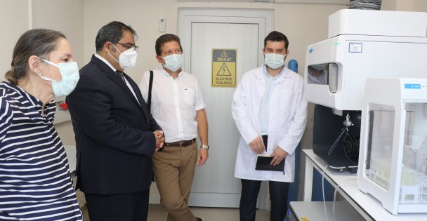 Konuşmaların ardından protokol üyeleri hizmete giren laboratuvarda incelemelerde bulundu.