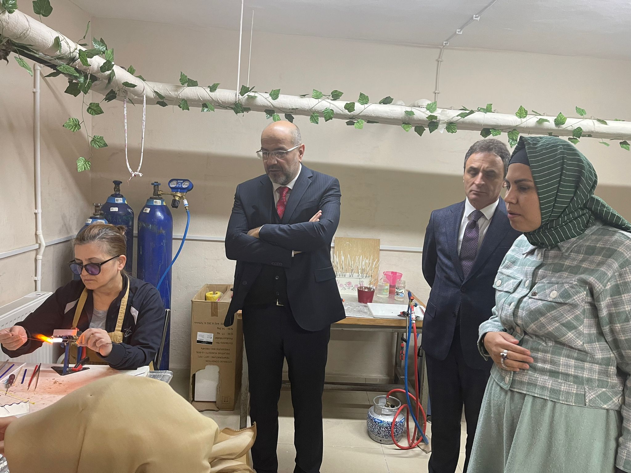 Milli eğitim Bakanlığı Hayat Boyu Öğrenme Genel Müdürlüğü Araştırma Geliştirme ve Projeler Daire Başkanı Ebubekir AYDIN, Birleşmiş Milletler Kalkınma Programı temsilcileri ve İlçe Milli Eğitim Müdürü Şener DOĞAN "Fotovoltaik Güneş Panelleri Kurulumu Ve Hibrit (Güneş-Rüzgâr) Sisteme Entegrasyonu Kursu" ile diğer kurslara ziyarette bulundular.