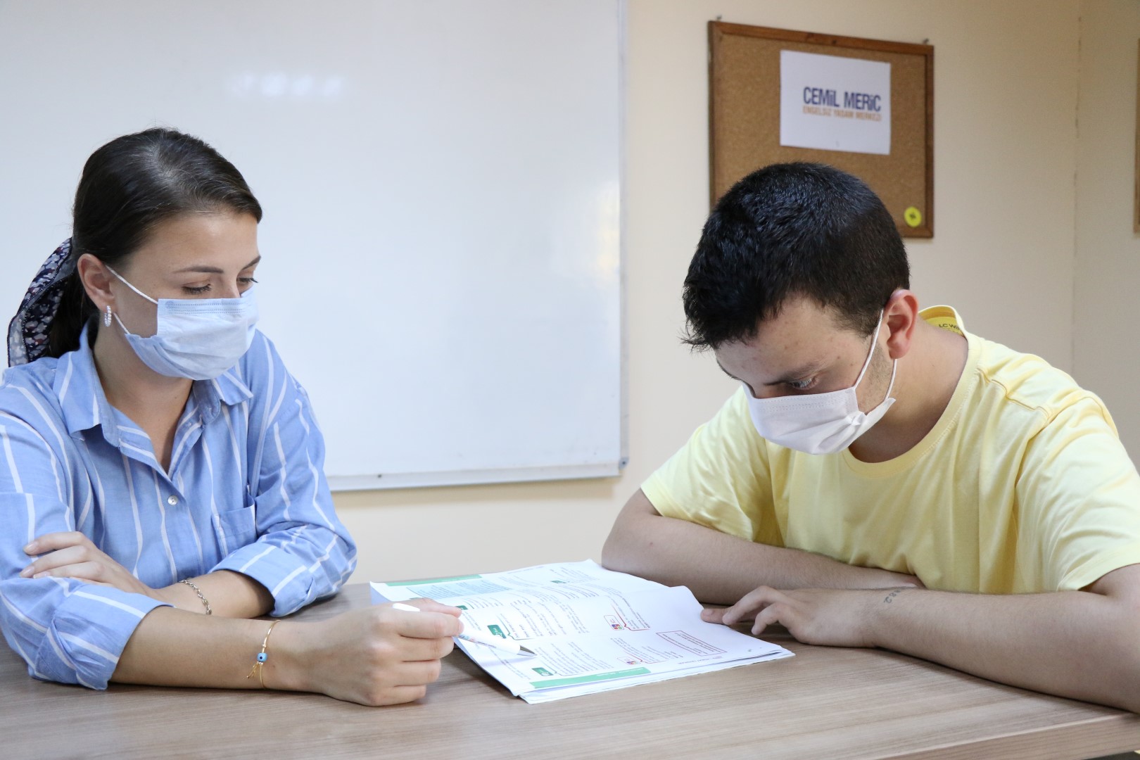 Maske ve mesafe kurallarını dikkate alan 25 öğrenciye, engel grubuna yönelik genel yetenek-genel kültür kapsamında Türkçe, matematik, tarih, coğrafya, vatandaşlık derslerinde güncel konular işleniyor.
