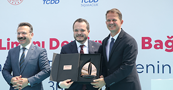 Konuşmaların ardından DP World Yarımca Üst Yöneticisi Kris Adams, Ulaştırma ve Altyapı Bakanı Cahit Turhan'a el yapımı maket yelkenli hediye etti.