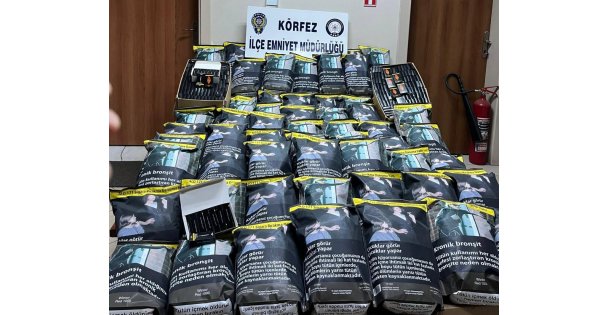 Körfez ilçesinde durdurulan bir araçta 21 bin 200 makaron (filtreli sigara kağıdı) ile 70 kilogram kaçak tütün ele geçirildi.