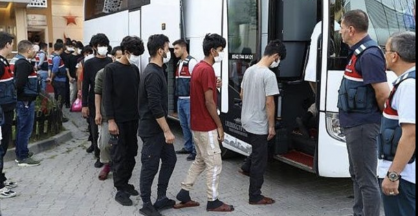 32 düzensiz göçmen sınır dışı edildiKocaeli'de yurda yasa dışı yollarla giren 32 yabancı uyruklu ülkelerine gönderildi. 25 Kasım 2022 Cuma 14:40 Valilikten yapılan açıklamaya göre, kentte düzensiz göçle mücadele çalışmaları devam ediyor. Kocaeli ve çevre illerde güvenlik güçlerince yakalanan 32 düzensiz göçmen, İl Göç İdaresi Müdürlüğü Gündoğdu Geri Gönderme Merkezine teslim edildi. Yabancı uyruklular, işlemlerin ardından sınır dışı edildi. Facebook'ta Paylaş Tweetle Google+ Paylaş