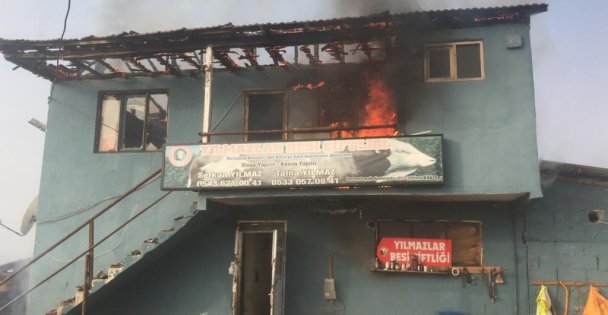 Ahır olarak kullanılan binanın üst katında yangın çıktı, faciadan dönüldü