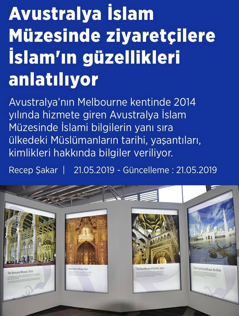 Federal hükümetin desteğinde Avustralyalı Müslüman iş adamı Moustafa Fahour tarafından kurulan ülkenin ilk ve tek İslami müzesi olma özelliğini taşıyan Avustralya İslam Müzesi, açıldığı günden itibaren 50 binden fazla ziyaretçiyi ağırladı.