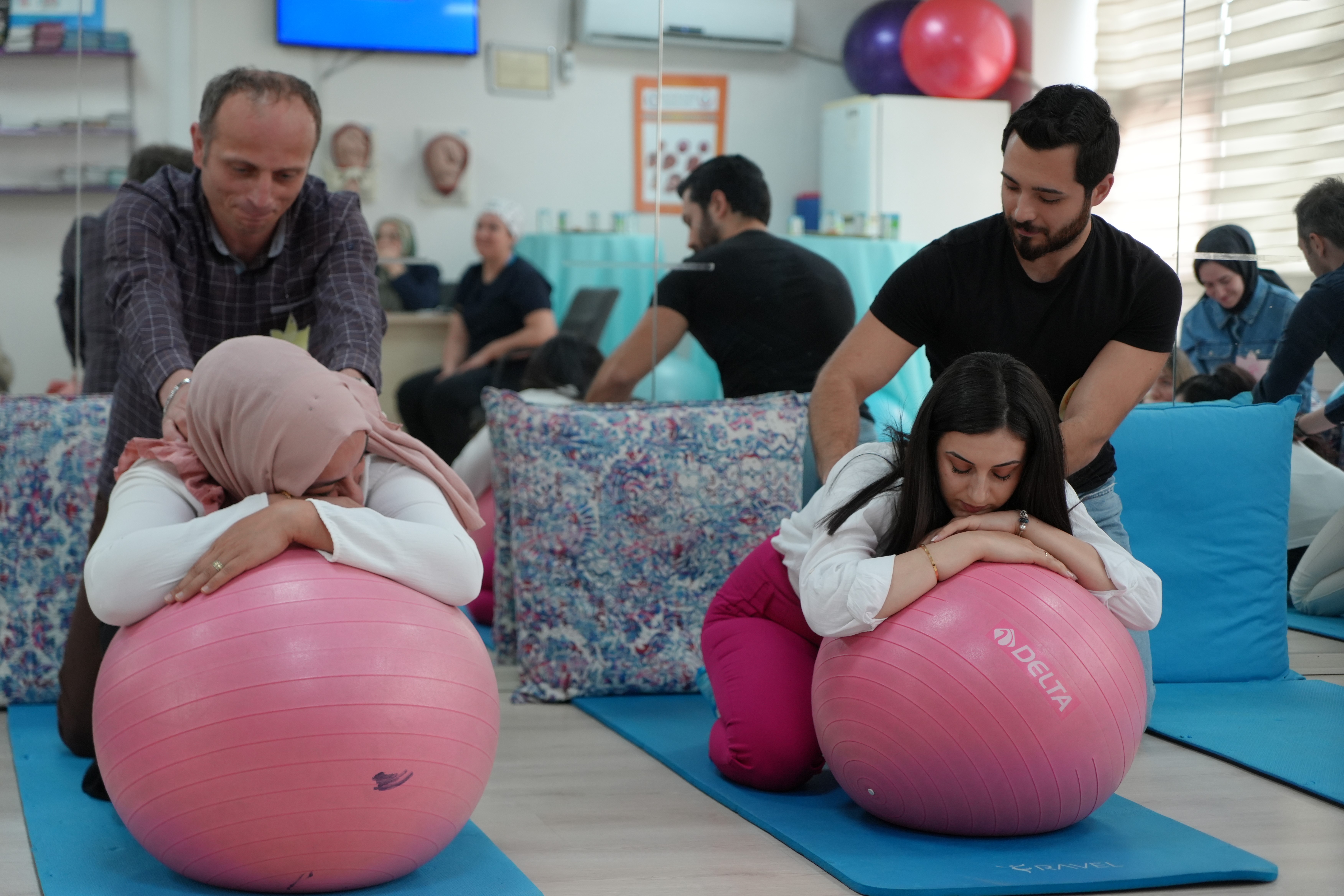 Ücretsiz olarak verilen eğitimde fizyoterapist, psikolog, anestezi hekimleri, ebe ve hemşirelerle program sürdürülüyor.