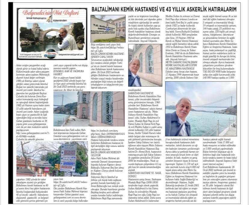 Evet Baltalimanı hastanesinde 26 Ocak 2022 tarihinde çok önemli tesadüfler yaşadım yarın bu tesadüfü ve başhekim ile yaptığım görüşmelere yer vereceğim yazımı okumanızı tavsiye ederim. Araştırmacı gazeteci ve 30 yıllık belgeselci olarak Baltalimanı kemik hastanesi ile ilgili devri alem belgesel programı olarak belgesel çekerek tarihe not düşüp zamana noterlik yapacağımı sizlerle paylaşıyorum.